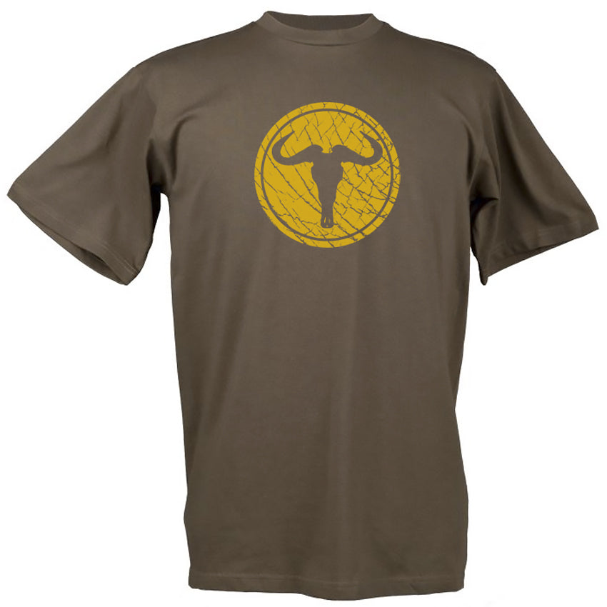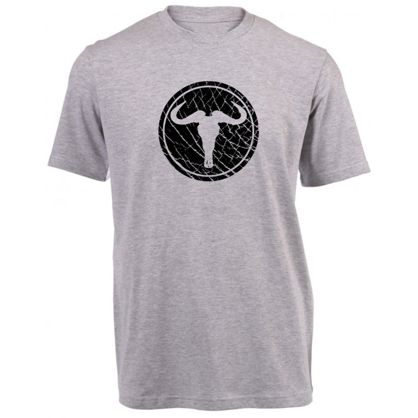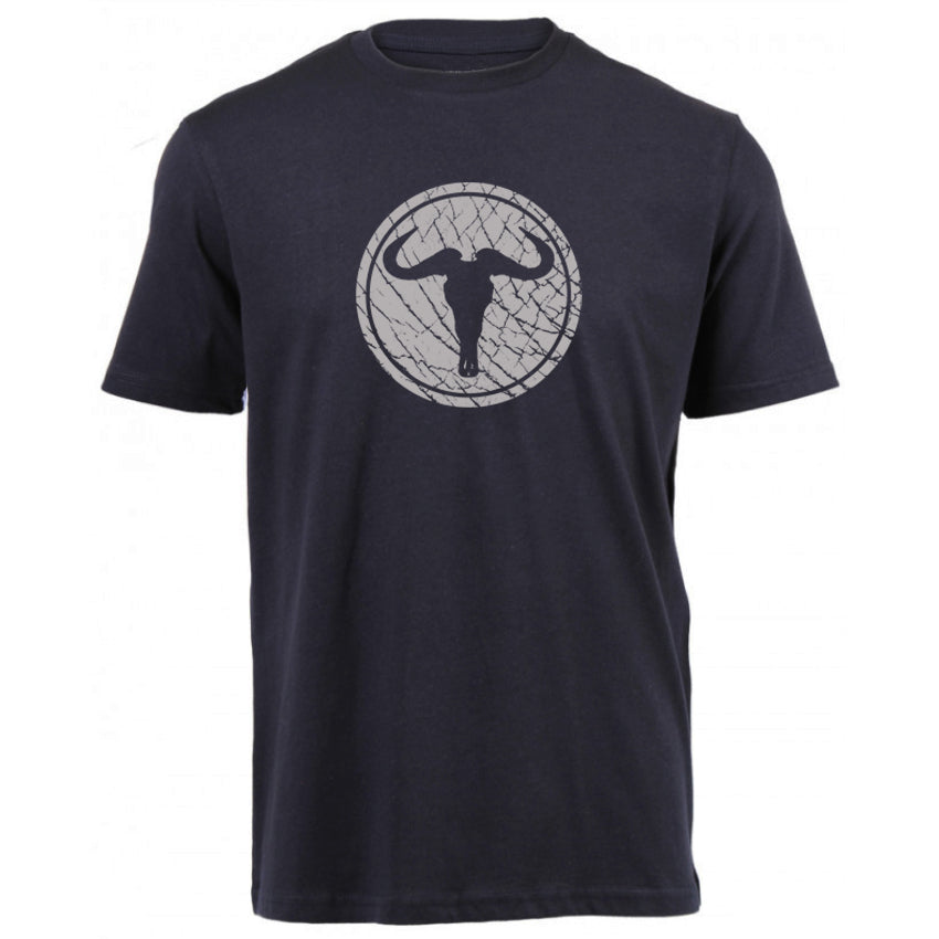Screen printed "Wildebeest Skull on Elephant Skin" design from the Creative Nature collection. This design is comprised of a wildebeest skull motif cut out against an elephant skin background.